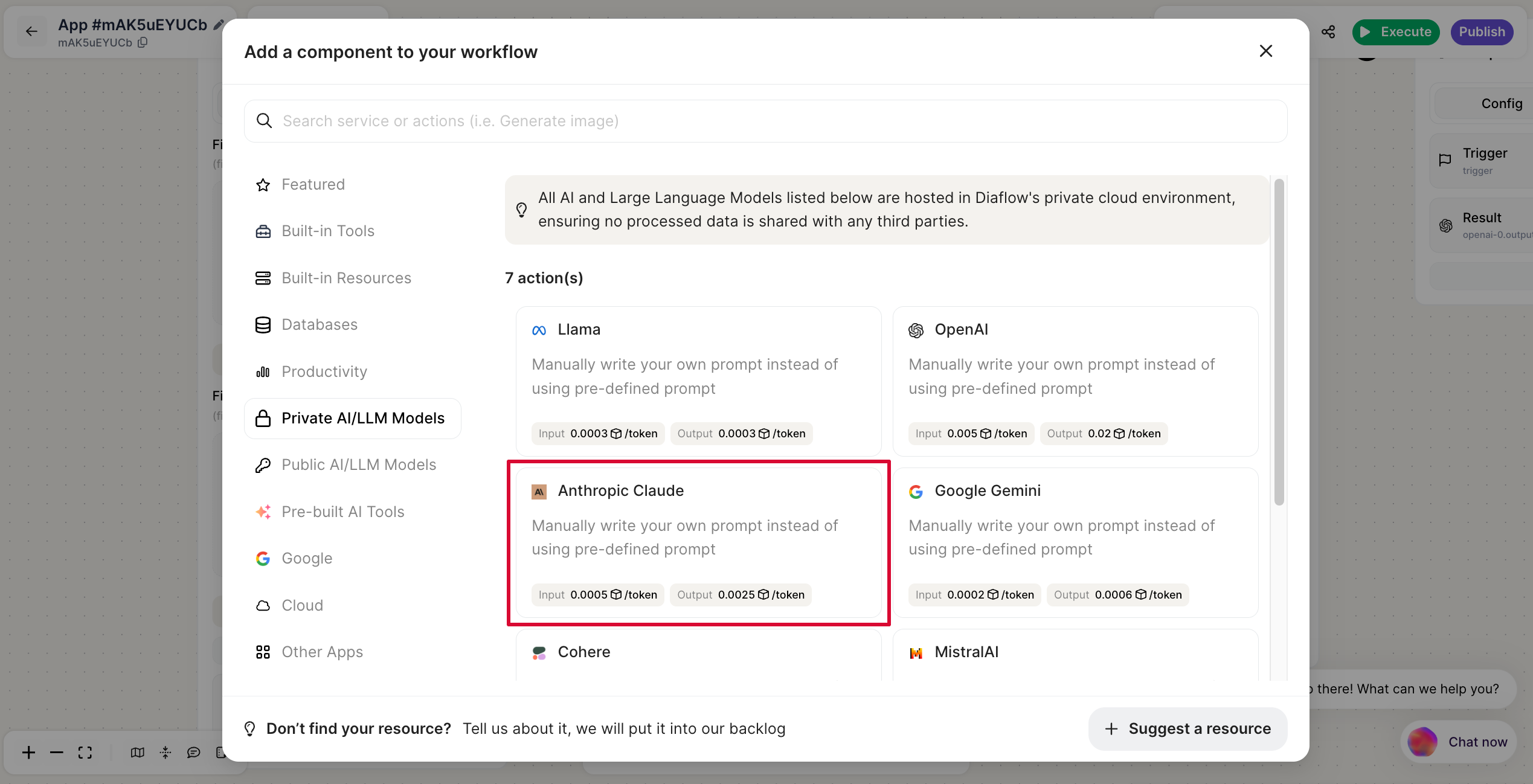 On the **"Component List" popup**, for nodes that consume credits in Diaflow, a credit indicator will be displayed.