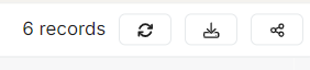 These elements show differents things. First of all "6 records" mean that the table contains 6 rows. When you click on the first icon it refresh the table. The second icon can download the table in a CSV file.&#x20;