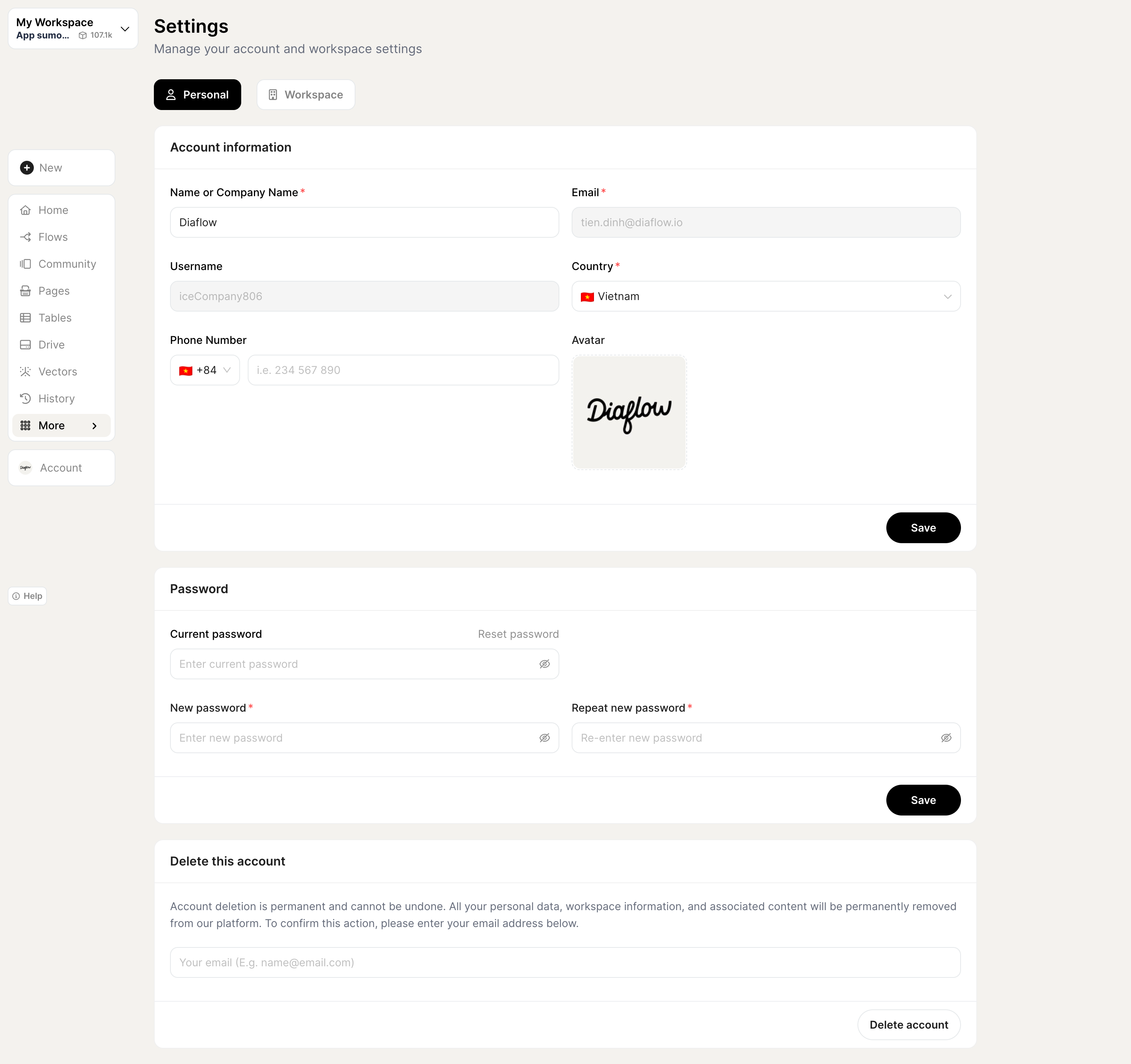 # Change "Personal" & "Workspace" settings