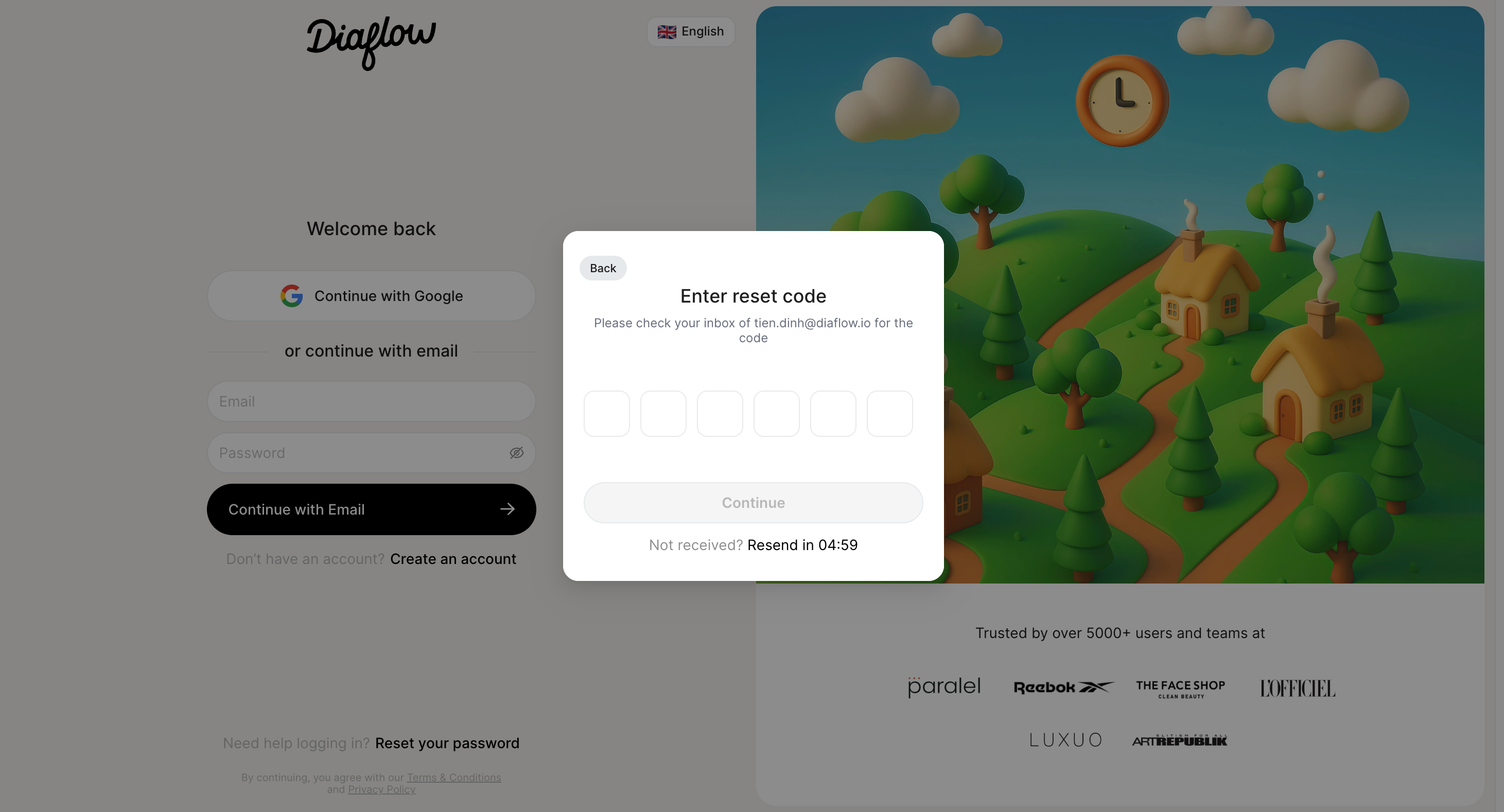 If you forget your password, click on "**Forgot password**" located just below the password input field. A popup will appear, prompting you to enter your email.