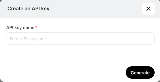 To create an API key you just have to click on "**Create a new key**" and enter an API key name and click on "**Generate**".